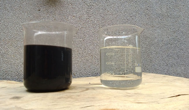 【油墨廢水經(jīng)過處理前、后的對比】